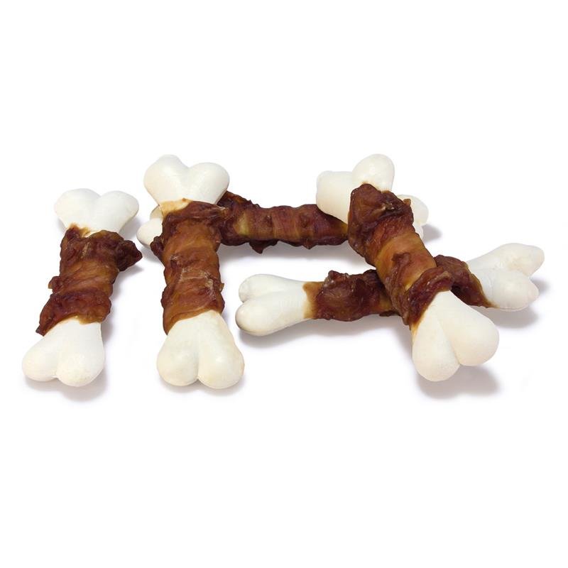 Huesitos prensados naturales enriquecidos con calcio y sabor a conejo. Ideales para fortalecer dientes y huesos, además de ser un premio delicioso para tu perro.